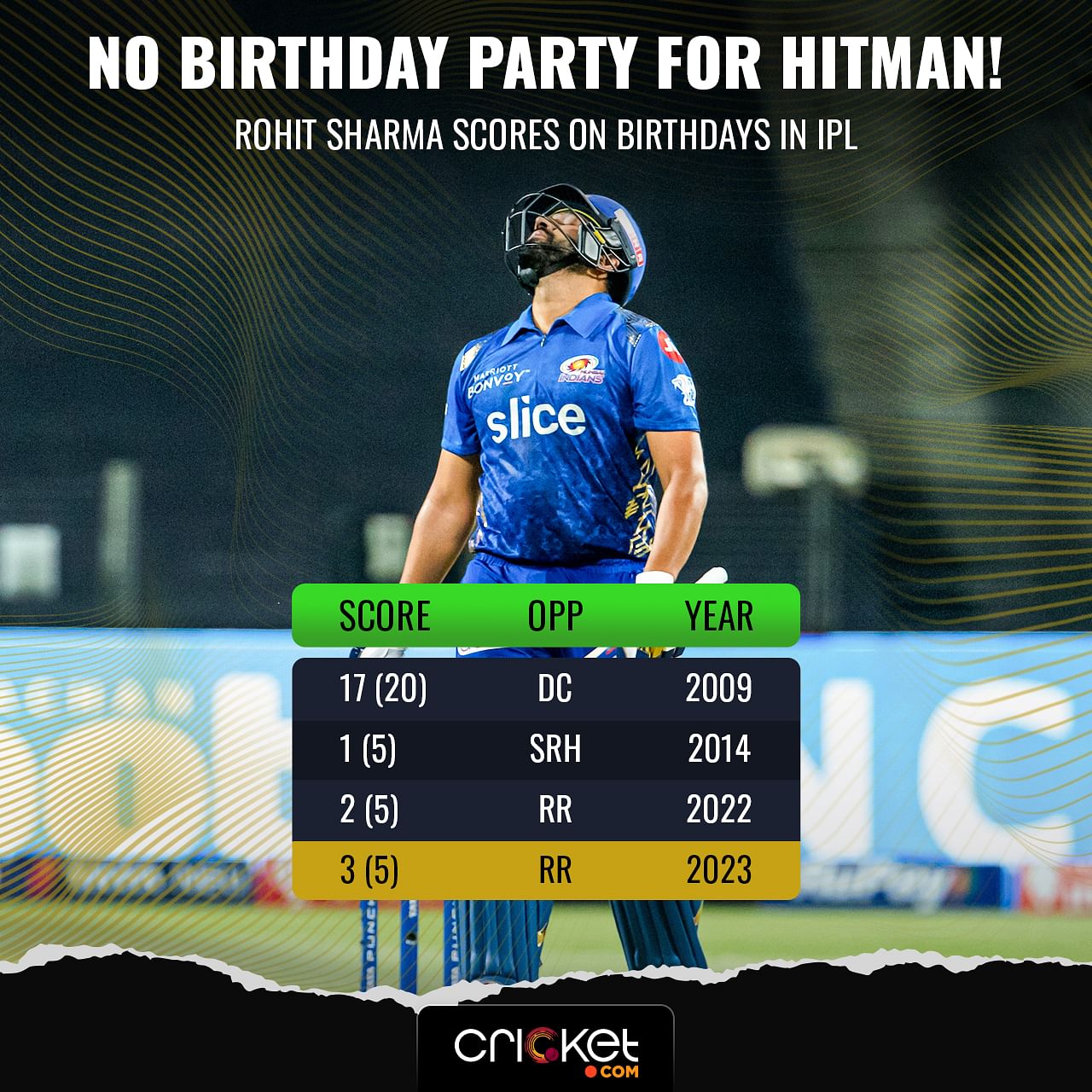 Rohit Sharma's torrid run on his birthday continued as he was dismissed for three off five. In four innings, his best is 17.
