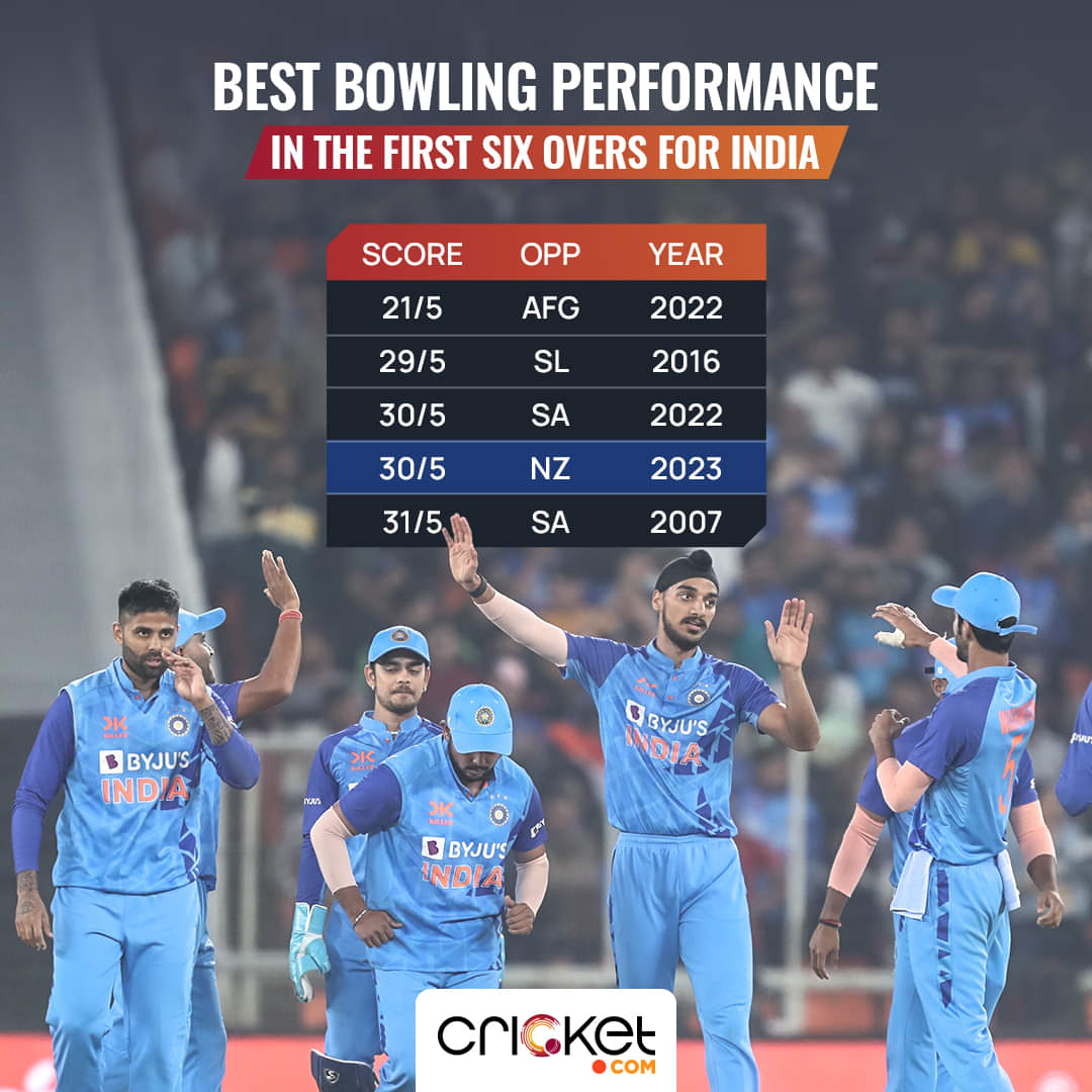 India went on to add another wicket, taking the tally to five. At the end of the sixth over, New Zealand were 30/5, which is the joint third-best bowling performance by India in the first six overs.