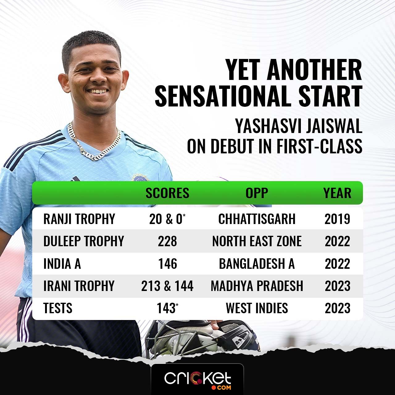 - Barring Ranji Trophy, he has scored a century on debut in every first-class tournament. In Duleep Trophy and Irani Cup, Jaiswal had a double century on debut.
