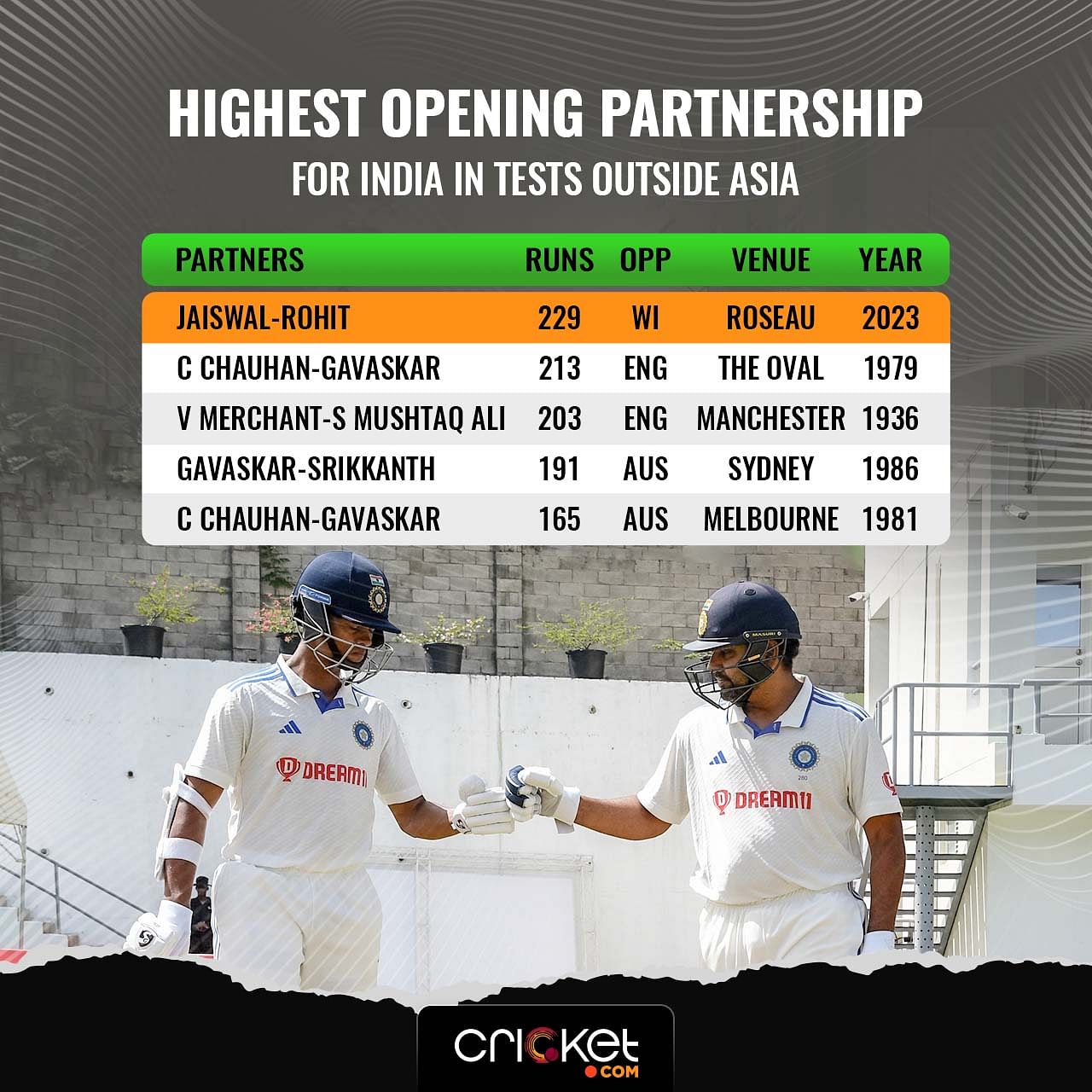 Rohit and Jaiswal hoisted a 229-run partnership for the opening wicket. In Tests outside Asia, this is their highest opening stand.