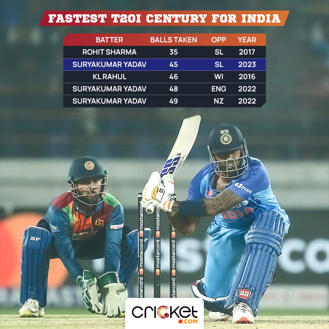 In T20Is, SKY now has three centuries in just 43 innings. With his third century, he has the joint second-most centuries in the format. Rohit Sharma leads the list with four in 140 innings.