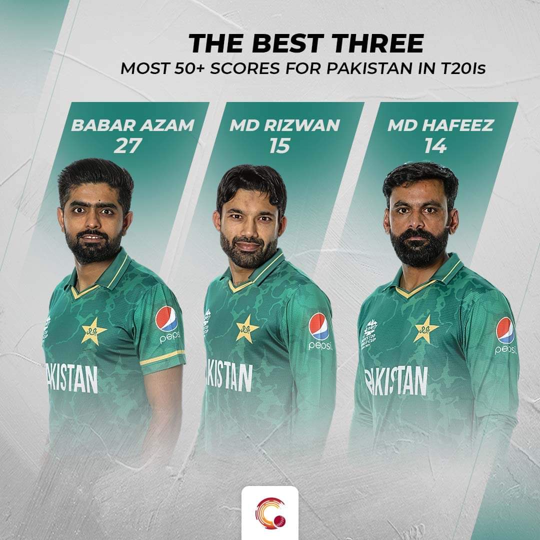He was slow to start, but picked up the pace gradually and went on to score an unbeaten half-century (78). In T20Is, this was his 15th score of over 50, he has 14 half-centuries and one century to his name. Among Pakistan batters, he now has the second most 50+ scores in T20Is, going past Mohammad Hafeez.