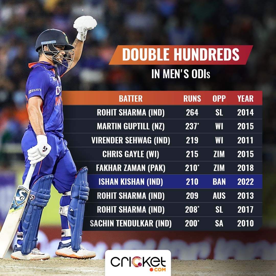 By scoring 210 in the third ODI against Bangladesh, Kishan made a statement that he is definitely a contender for the opening slot. Here are some records he registered in this innings: