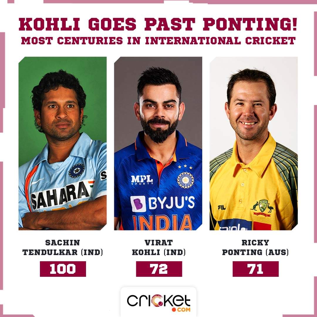 In international cricket, this was his 72nd century, 44 in ODIs, 27 in Tests and one in T20Is. By virtue of this ton, he went past Ricky Ponting’s tally of 71 international 100s. The great man, Sachin Tendulkar is the only one ahead of him with 100.