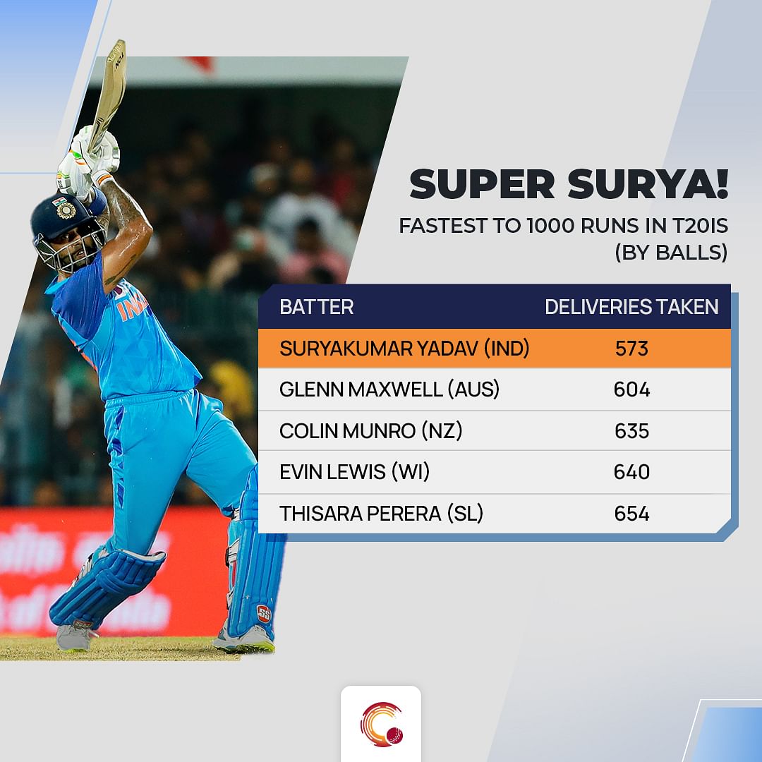 -When he reached 24, Surya became the fastest batter to the landmark of 1000 runs in terms of balls. He achieved this feat 31 balls quicker than Glenn Maxwell.