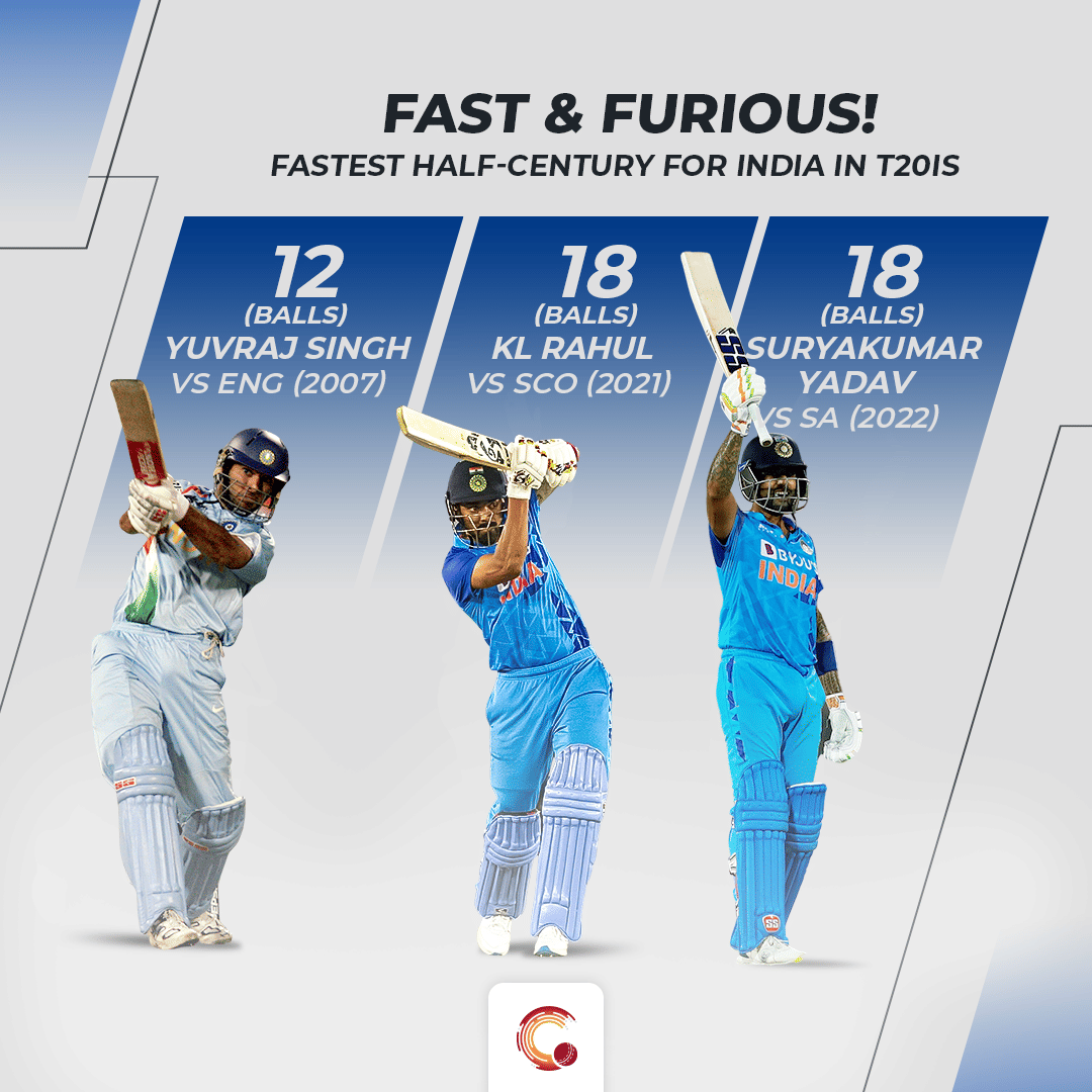-He registered a half-century in just 18 balls, which is the joint second fastest for an Indian in T20Is. This is also the fastest for an Indian against South Africa.