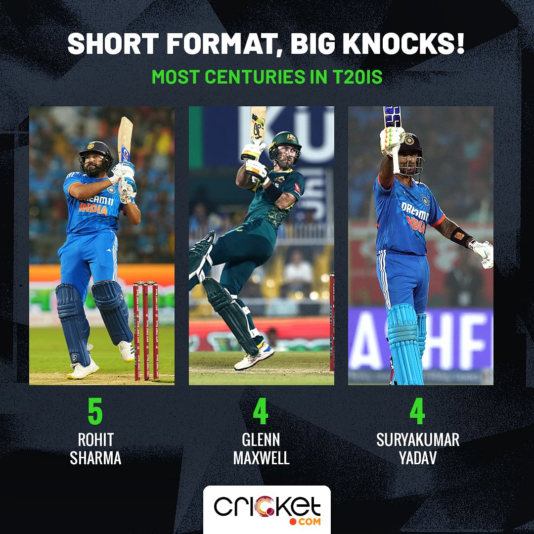 -With an unbeaten 121, Rohit became the first batter in T20Is to register five tons. Suryakumar Yadav and Glenn Maxwell are behind with four.