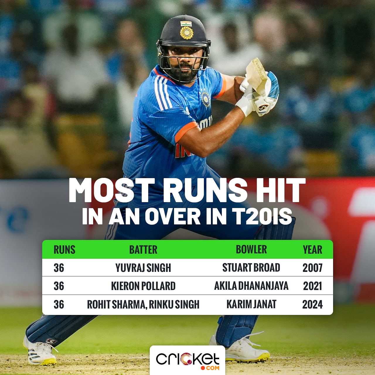 -Overall, in all T20s, he has 258 sixes as a skipper. Only MS Dhoni has more than him (276). He went past Kieron Pollard's record of 252.