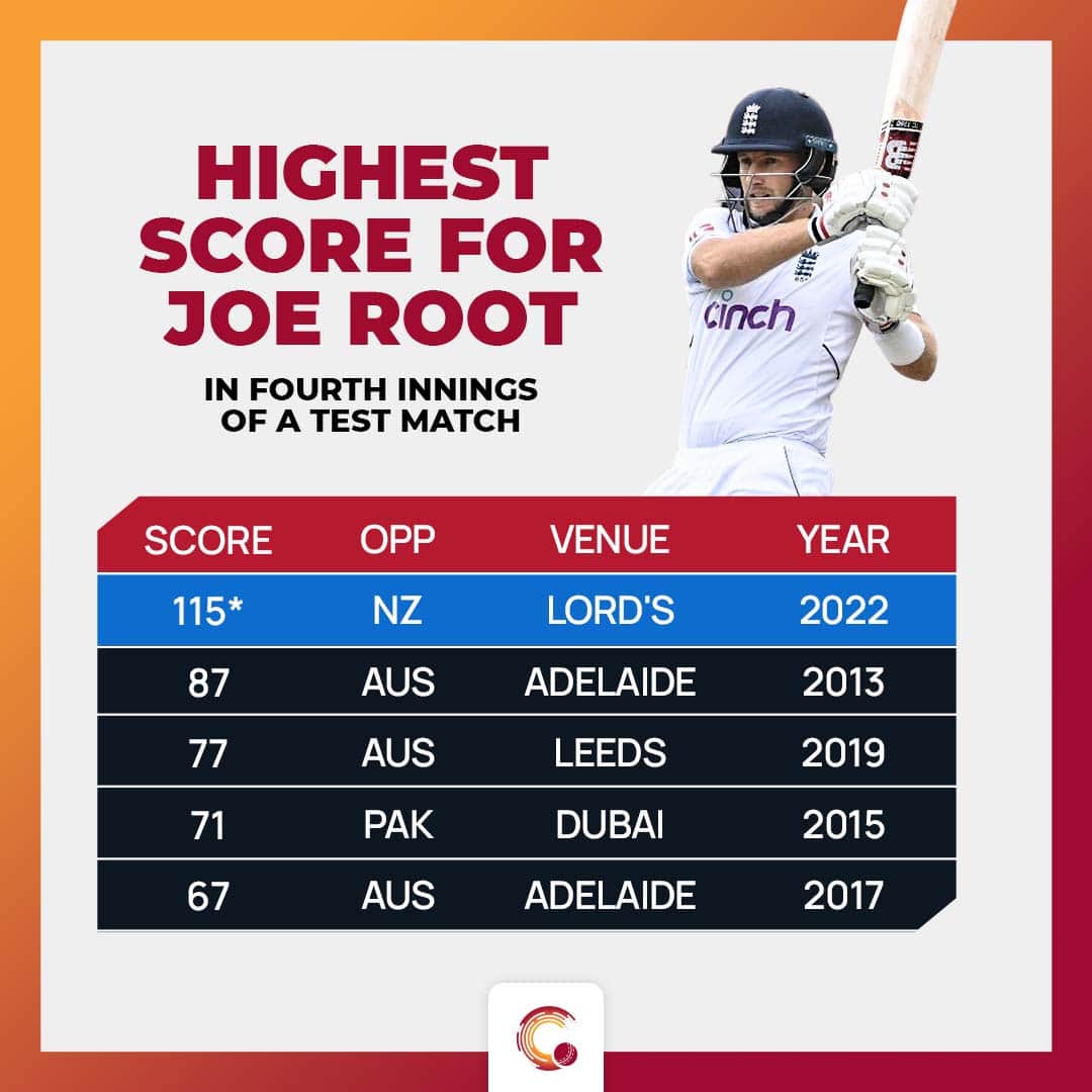 Despite scoring nearly 9000 runs at the start of this match, Root didn’t have a single 100 in the fourth innings. England couldn’t have hoped for a better match for Root to register his first ton in the fourth innings. Previously, his best score of 87, came against Australia in Adelaide in 2013.