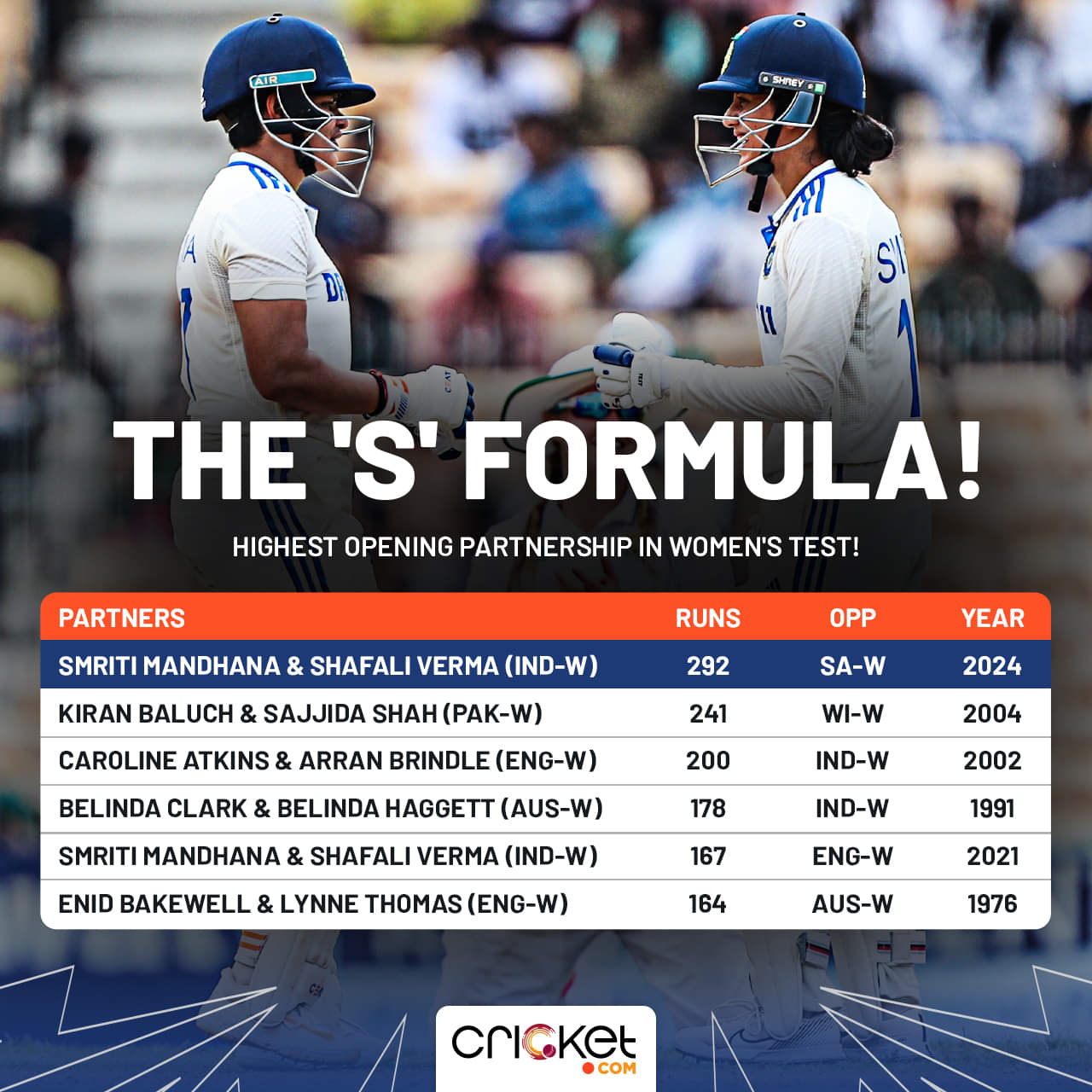 > Smriti Mandhana and Shafali Verma now have the highest-ever opening partnership in Women’s Tests