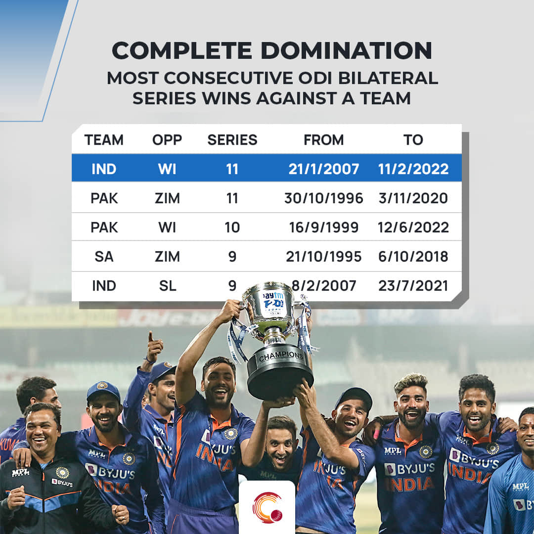 As mentioned, the West Indies haven’t won a single ODI bilateral series against India since 2007. When India toured the West Indies in 2006, the hosts had won their last series (4-1). Post that, since 2007, India have won all the 11 bilateral series. If India manage to win this, they will be the first team to win 12 consecutive ODI bilateral series against a team.