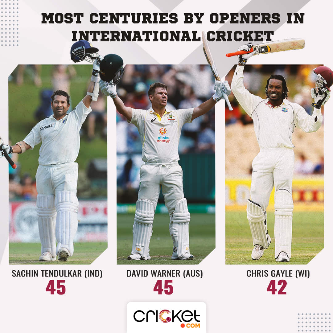 With that he now has the joint-most 100s among openers in international cricket. However, Sachin’s all 45 came in one single format (ODIs). In Tests he opened only once.