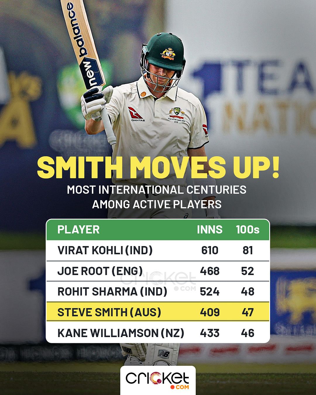 Smith went past the record jointly held by Michael Hussey, Shaun Marsh, Darren Lehmann, Damien Martyn and himself, for most tons by Australians in Tests in Sri Lanka.