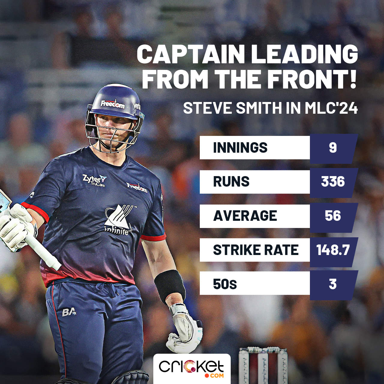 336 runs at an average of 56.00 and strike rate of 148.67, Smith just finished MLC 2024 as the tournament’s third-highest run-getter.