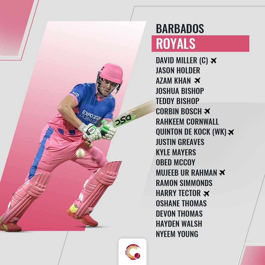 South Africa’s Corbin Bosch is the sixth overseas player in the squad and a decent backup all-round option. Also, Devon Thomas, who recently broke into the national T20 squad, has replaced Shai Hope in the squad.