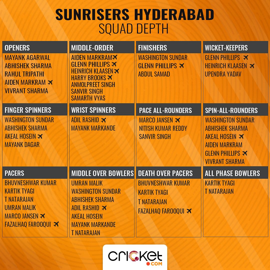 The franchise hasn’t announced a vice-captain but it should be either Mayank or Bhuvneshwar Kumar. For Klaasen, there is a like-for-like replacement in Phillips. For Marco Jansen, there is Fazalhaq Farooqui.
