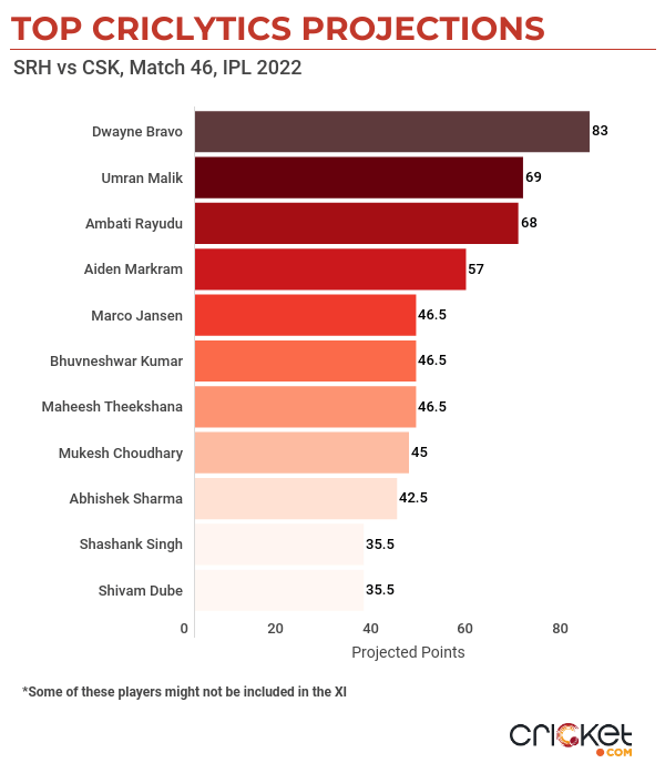 Ambati Rayudu looked rusty in the first four matches of the season as his strike rate was just 97, which was sub-par to the standards he set in IPL 2021. However, in the last three innings, Rayudu has not only scored 30+ in all those matches, but also scored at a healthy strike rate of 156. On top of that, the right-hander has a stunning record against SRH - 540 runs in 17 innings at an average of 45 and a strike rate of 130.