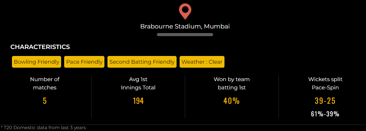39 out of the 64 wickets at the venue have been taken by the pacers, with the spinners only accounting for the rest 39.1%. Expect the same when these two sides take on each other on Friday.