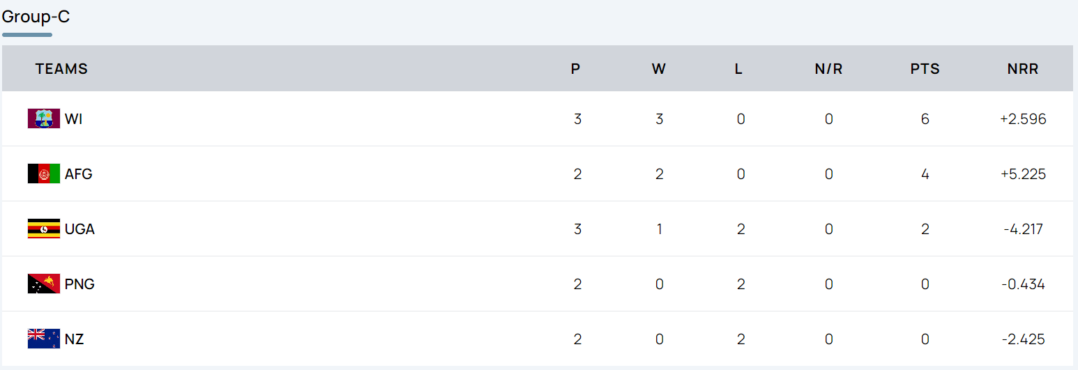 Well, mathematically, they still can, but their chances of progressing further are close to NONE. With two defeats in as many games, the Blackcaps are currently at the bottom of the Group C points table, with their NRR reading -2.425. The West Indies have already qualified from that group, so there’s only one place for the taking.