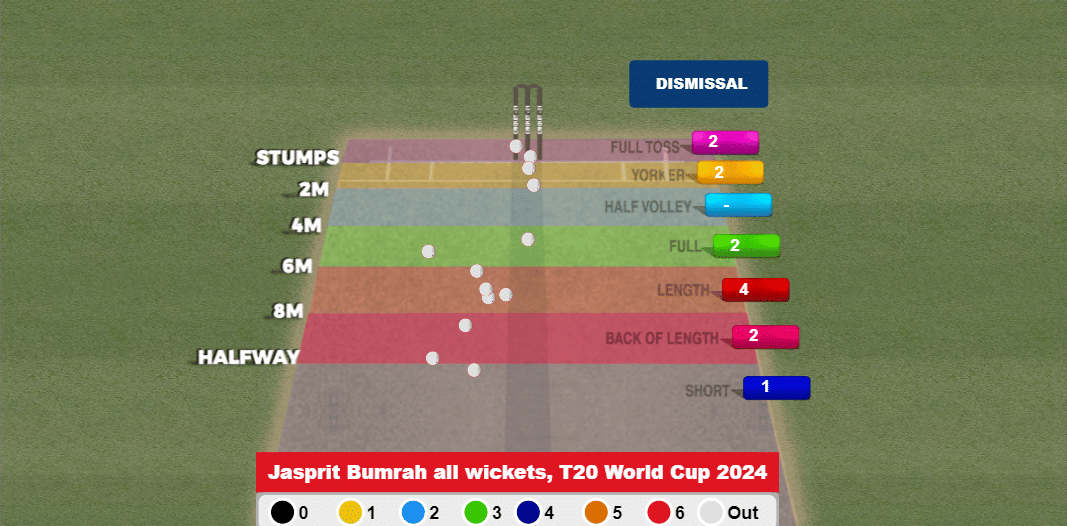 Bumrah has bowled 54.2% of his deliveries on the length area, and it is no surprise that he has found maximum success while bowling there, with four wickets.