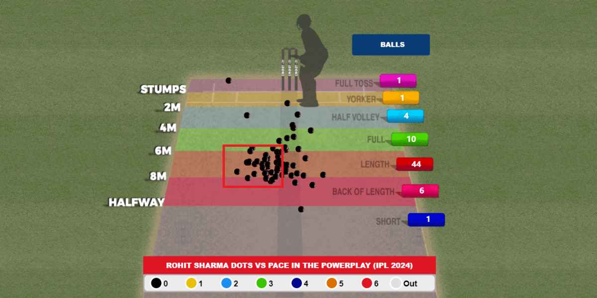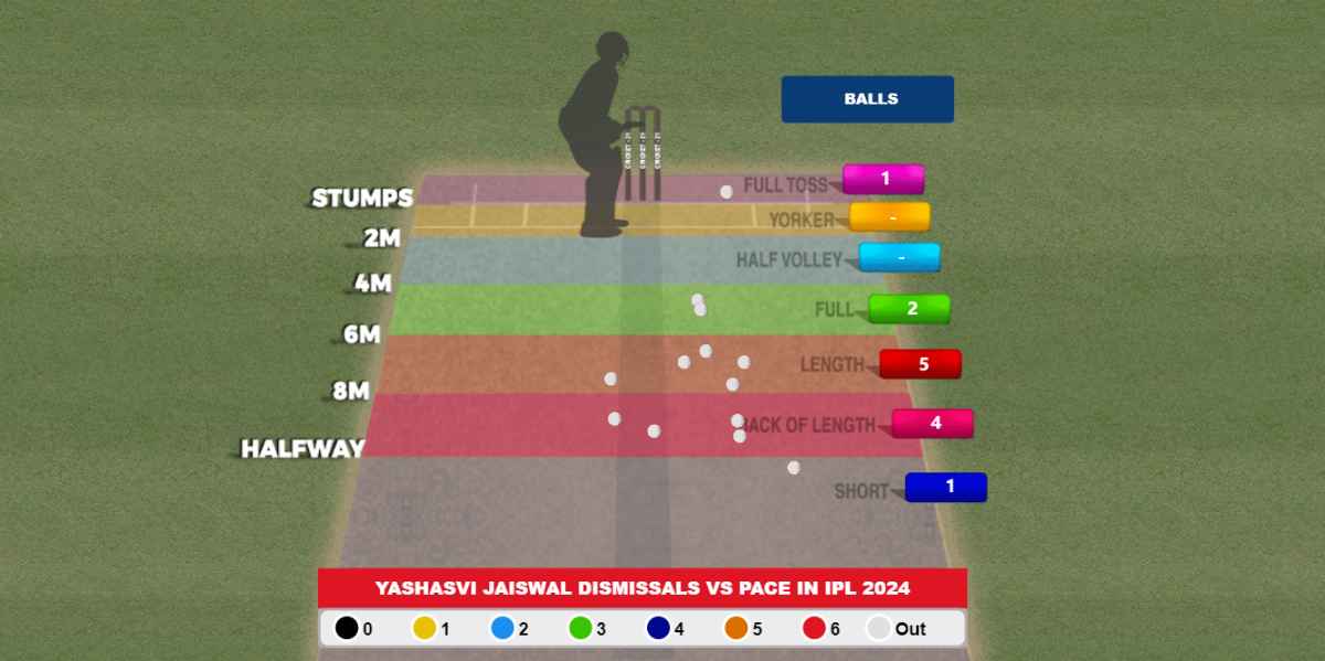 In IPL 2024, against balls that were pitched either 8m or shorter, Jaiswal averaged just 19.8, getting dismissed five times.
