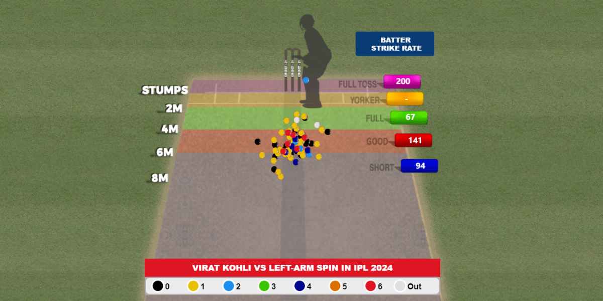 That being said, despite the poor strike rate, Kohli seldom got out to left-arm spin in IPL 2024. He averaged 53 against them, getting dismissed just twice in 85 balls.