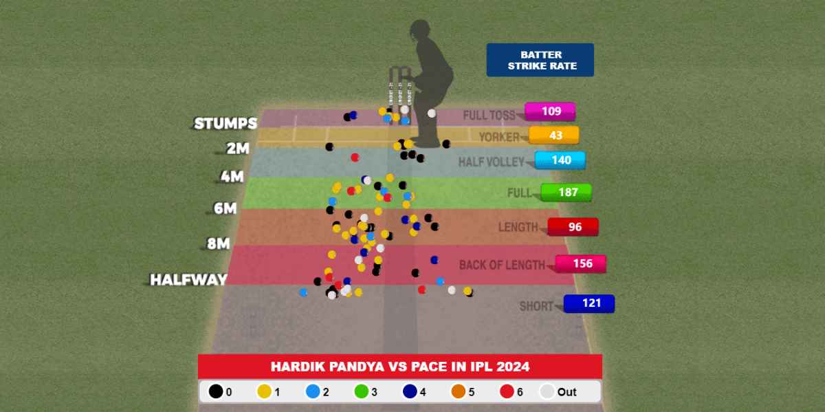 Hardik Pandya has been struggling with ‘hard lengths’ for a while now, but his struggles against good-length deliveries went from bad to worse in IPL 2024.