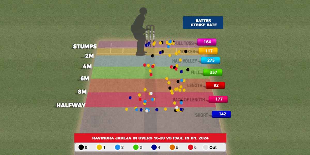 In IPL 2024, Jadeja had a SR of 167.9 at the death, which was an improvement on his numbers in IPL 2023 (147.8) and IPL 2022 (SR 150.8).