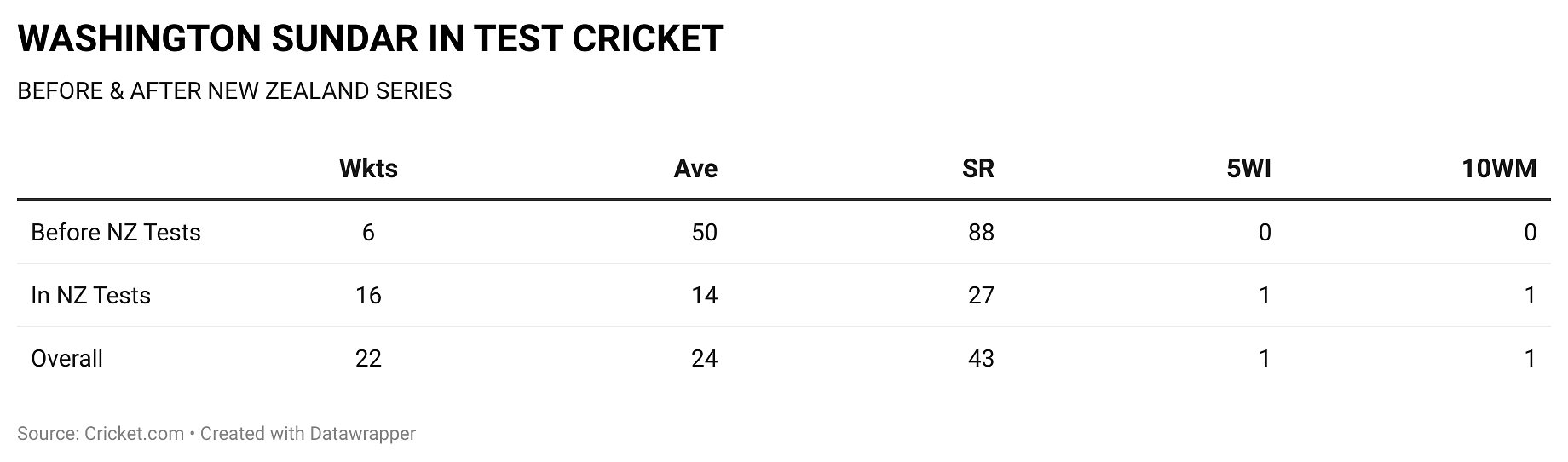 What India will have to ponder going forward definitely is the left-hander's batting position. Across Pune & Mumbai, Sundar looked more compact and untroubled than every Indian batter, barring Rishabh Pant & Shubman Gill, yet batted at No.8 or lower in all but one innings. The time may have arrived for India to bat Sundar at No.7 or, whenever there's an opportunity, even higher.