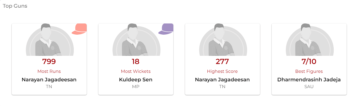 In the Vijay Hazare Trophy, we are at the pre-quarter-final stage, with Kerala locking horns with Jammu and Kashmir; Mumbai taking on Uttar Pradesh while Karnataka take on Jharkhand. Punjab, Maharashtra, Assam await their opponents, as Tamil Nadu will take on Saurashtra in the fourth quarterfinal on November 28. No surprise for guessing, Jagadeesan is the leading run-scorer, with 799 runs in seven games, with Kuldeep Sen leading the bowling charts, with 18 wickets.