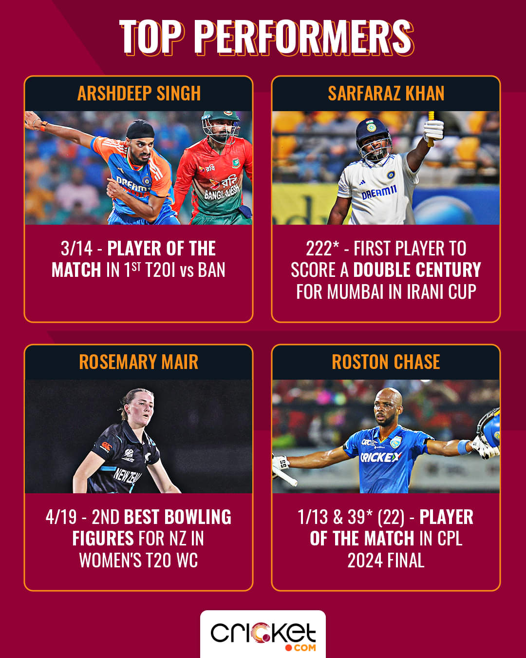 Mumbai rode on Sarfaraz Khan’s unbeaten 222 to post a mammoth 537 in their first innings, which propelled Mumbai to their first Irani Cup win in 27 years. Despite a superb 191 from Abhimanyu Easwaran – his fourth ton in seven innings – Rest of India (RoI) conceded a 121-run first-innings deficit. RoI had a sniff when they had Mumbai at 125/6 at one stage, but an unbeaten century from Tanush Kotian (114*) and his solid 158 partnership with Mohit Avasthi (51*) was enough to secure the title for Mumbai.