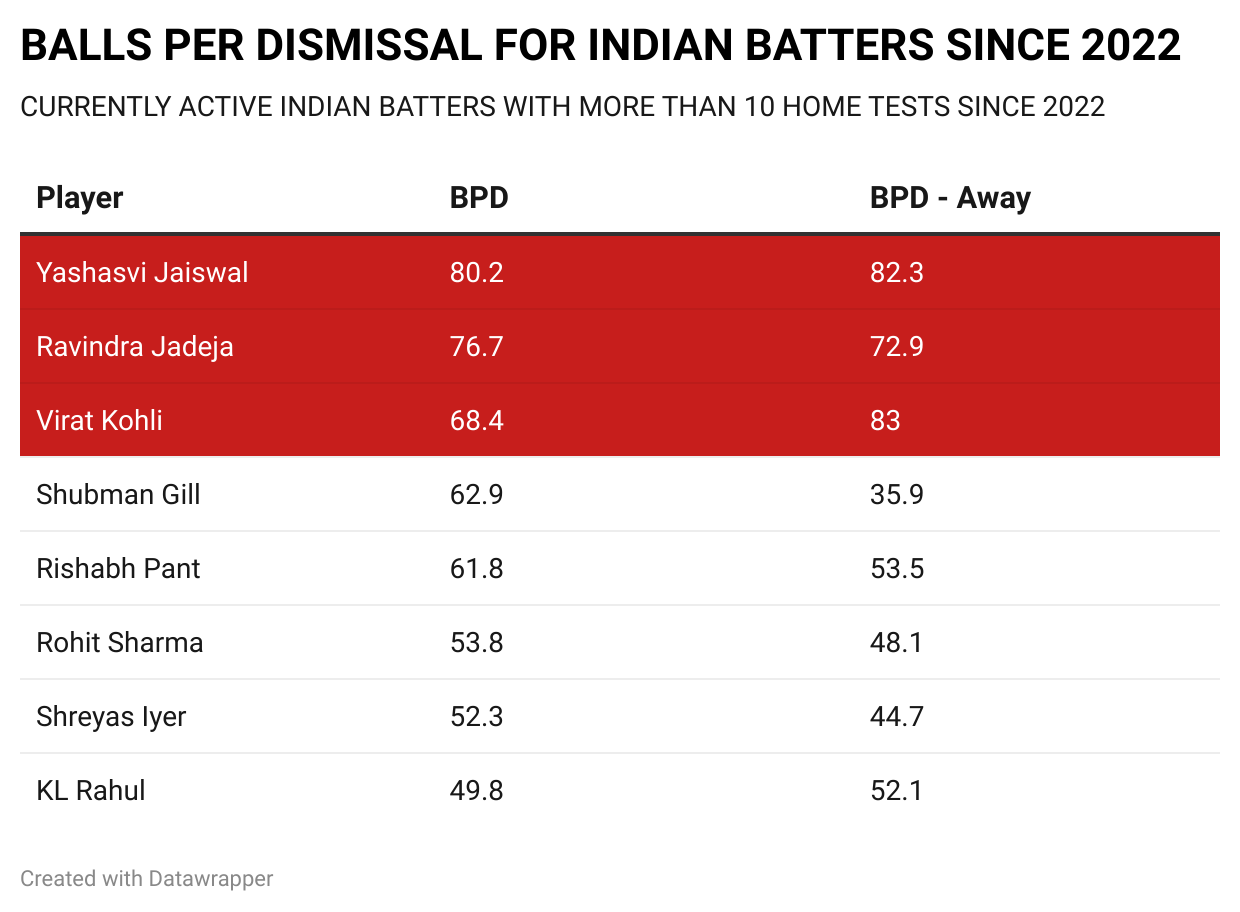 Over the last three years (since November 2022), Australia has the third lowest batting average as host country in Test (27.1). There will be periods when the visiting team needs to absorb pressure rather than shifting it back towards the Aussies — basically someone in the Pujara role.