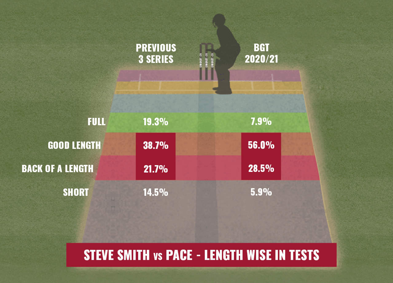 India chalked out the plan to block the off-side for the Australian batters. While both Smith and Labuschagne still scored more than one-third of their runs against pace on the off-side, the margin was reduced at the start of the innings.