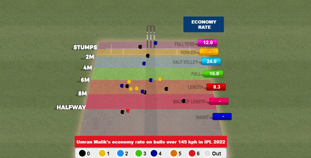 In comparison, Lockie Ferguson, who bowls similar pace, has conceded just 6.8 RPO, averaging nine. Umran is still a valuable asset for Sunrisers but the fact remains that he has to combine pace with accuracy, otherwise, his stocks will fall down very quickly.