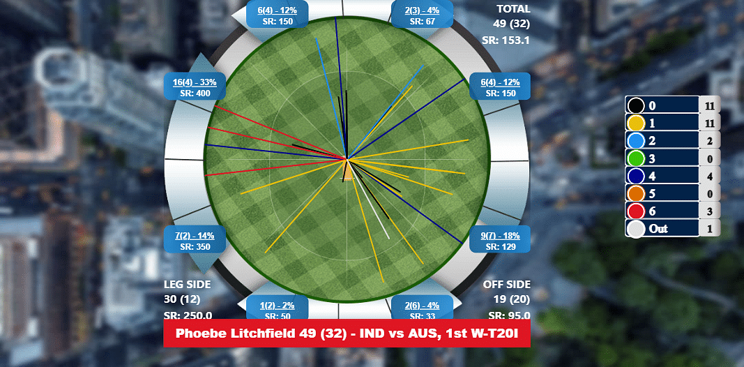 Phoebe Litchfield had a splendid ODI series ahead of T20Is, in which she had scores of 78, 63 and 119. She walked in with Australia in deep trouble at 33 for 4 and from there, played an excellent counter-attacking knock to bring her side back into the game. She showed power are terrific finesse, scoring at a strike rate of 161.1 against the pacers and 142.9 against spin. She brought out the sweep and reverse sweep at will against the spinners, not giving them any time to settle down.