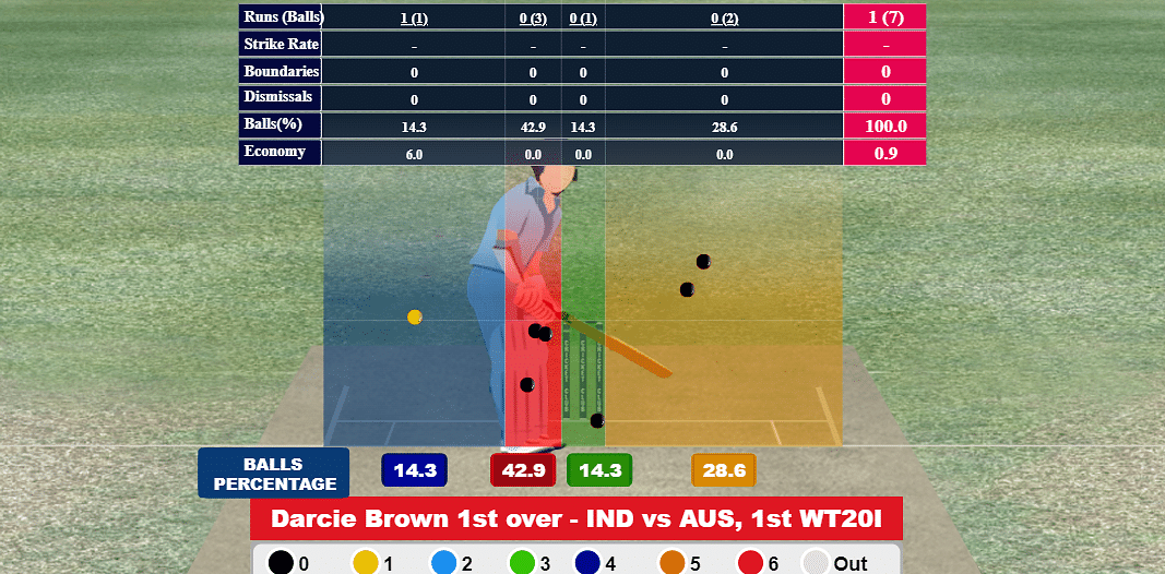 With just 141 on the board, Australia would have been hoping to get a couple of quick wickets to tilt the game in their favour. However, Darcie Brown bowled a shocking first over. She was all over the place, allowing India to take 14 extras in the very first over, which included no-ball, wides and leg-byes. That gave India the momentum and from there on, they never looked back.