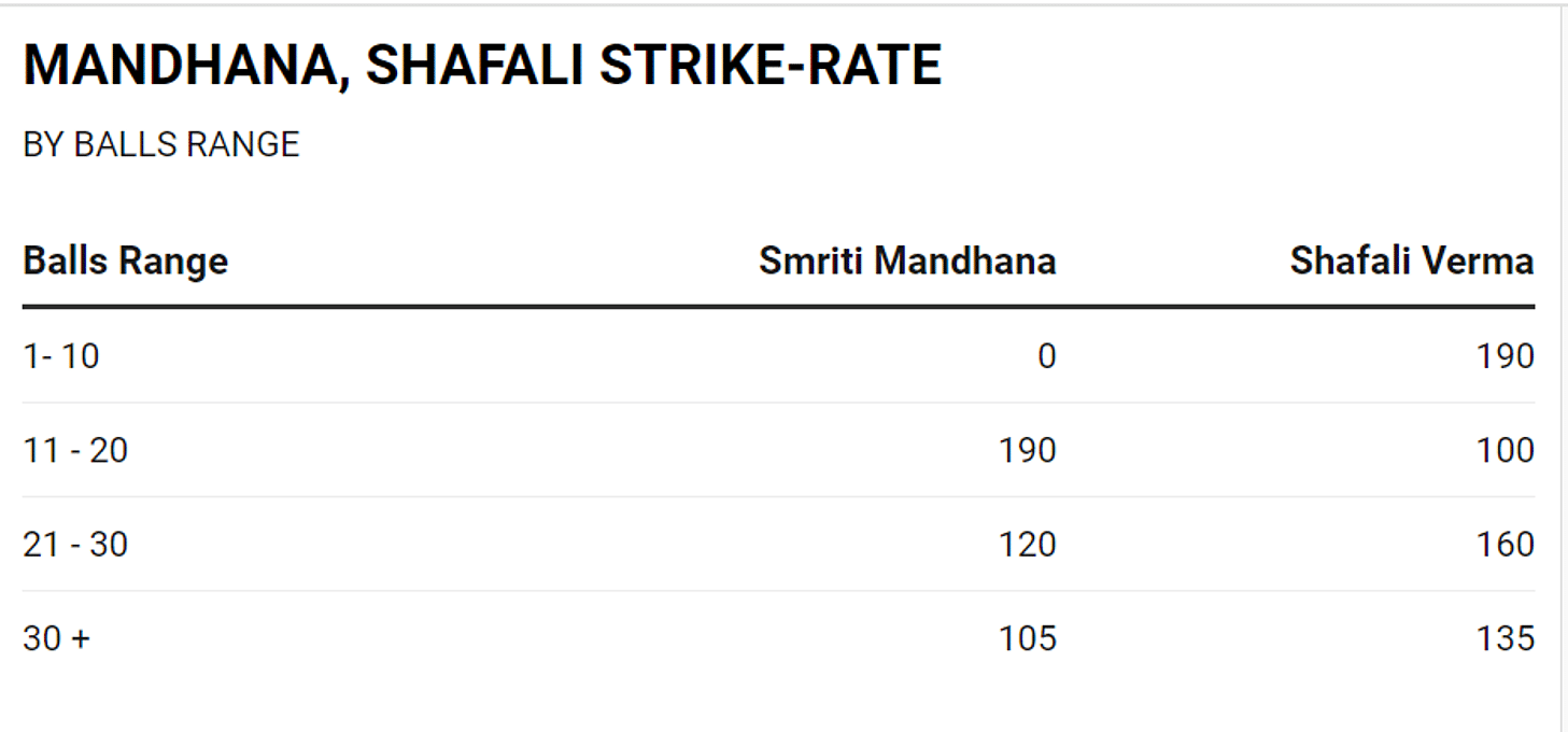 Mandhana did not look to match Shafali short for short but instead was happy to bide her time and let her partner do the heavy lifting.