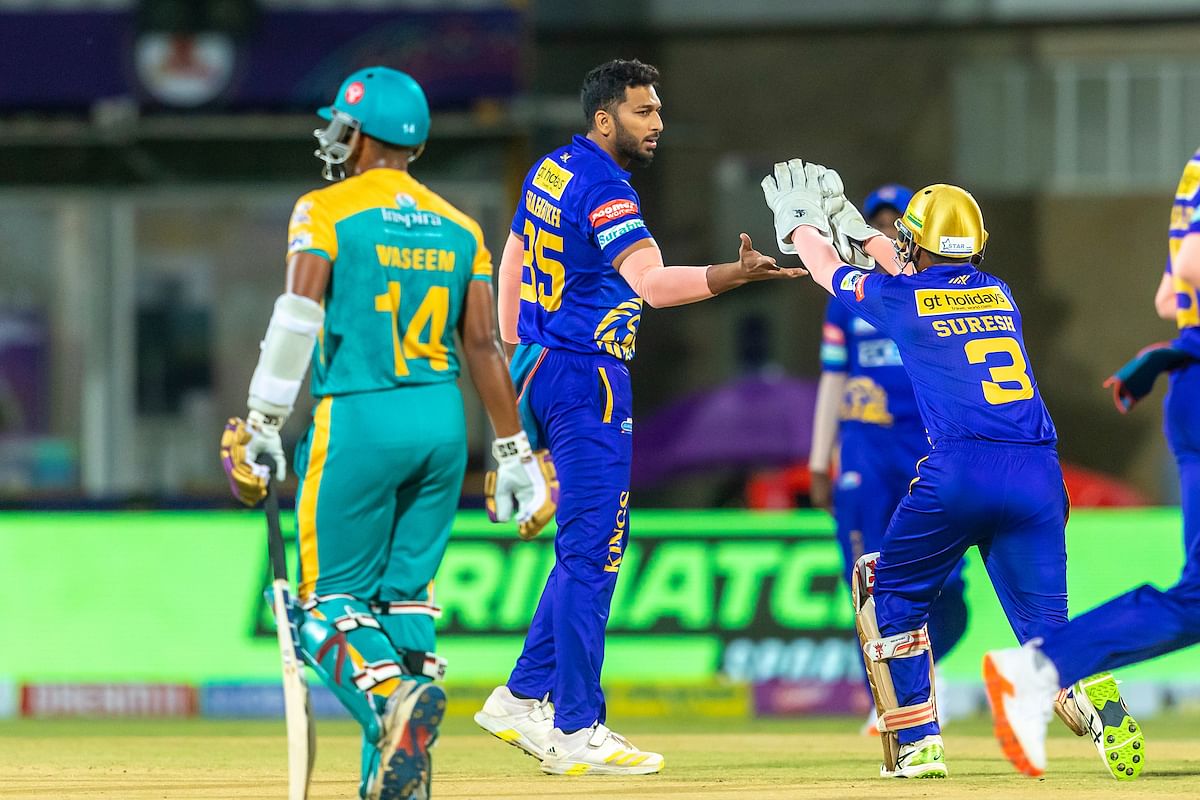 Shahrukh Khan is having another spectacular season in TNPL. He is once again in the highest wicket takers list, having taken 8 wickets, the joint-most in this tournament. Bowling aside, his captaincy has been top notch as he has led his team LKK to four win in four games, keeping them at the top of the points table. He picked up 5 wickets in two games in the Coimbatore leg.