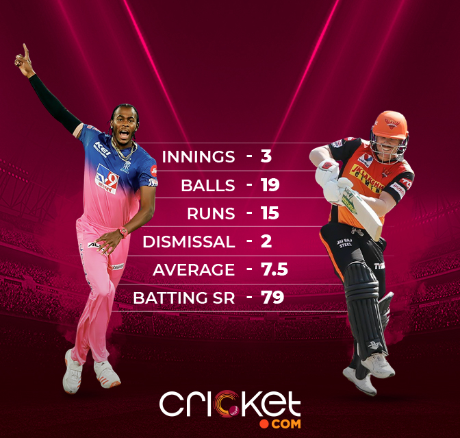 Prior to the 2020 season, David Warner had faced only 8 balls from Archer in IPL, without anything worth noticing. But right before IPL 2020, Australia toured England where Archer nailed Warner four times in five white-ball games, averaging 6.25 runs per dismissal against him. Archer’s mastery over Warner became the talk of the town.