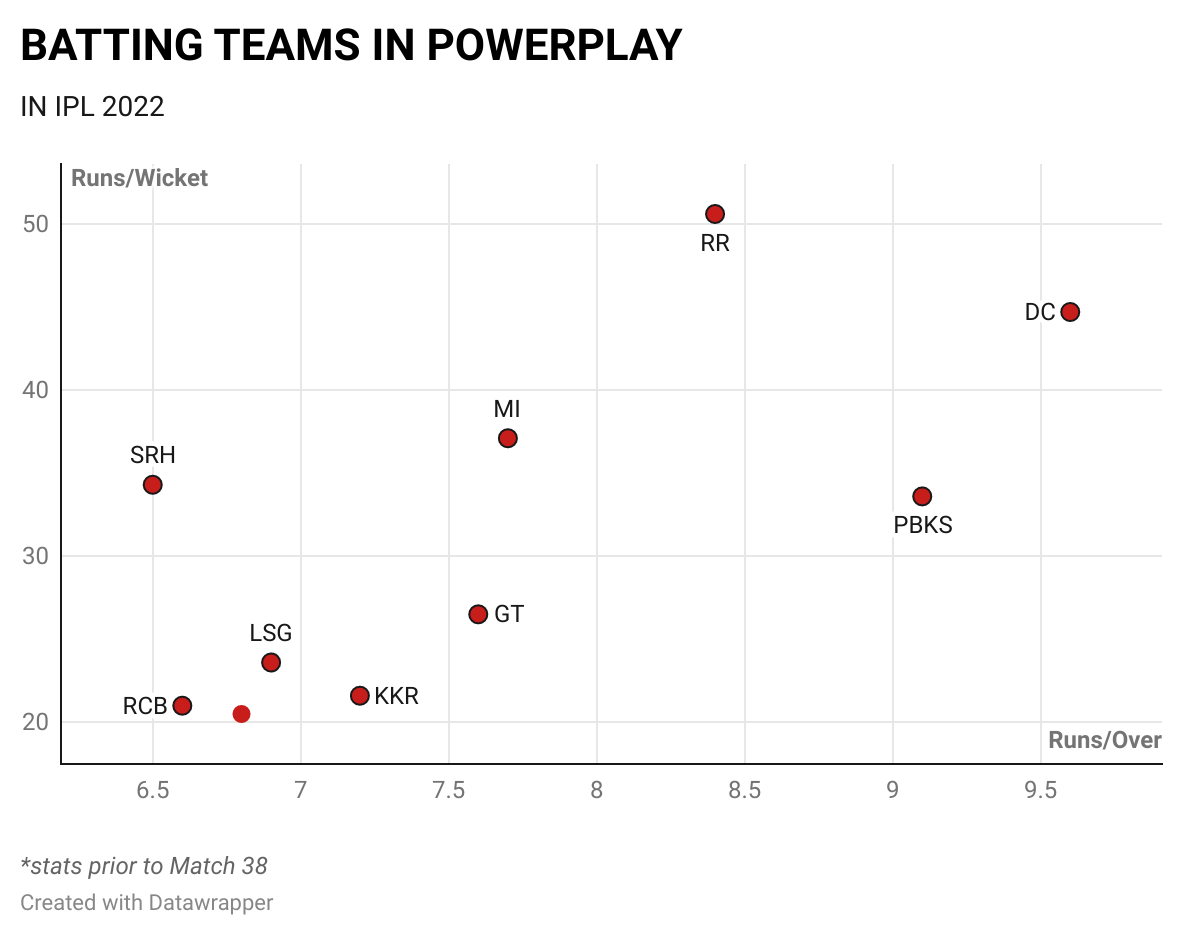 The obstacle that is Rajasthan’s top-order has only grown bigger with Buttler taking his form to a godly level. Despite numerous match-winning bowling performances, RCB have continued to struggle in the powerplay. They have only eight wickets in as many matches at 47.9 runs apiece during the field restrictions. The same might not work out bowling against Buttler and they will have to find a way to circumvent the beast that holds the orange cap.