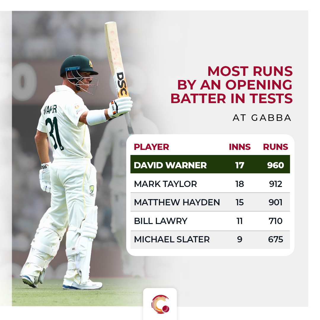 En route to his crucial 94, Warner edged past Mark Taylor to become the most successful opening batter at the venue with 960 runs. While Taylor scored 912 runs in 18 innings, Warner achieved this feat in 17 innings to become the leading run-scorer at the Gabba.