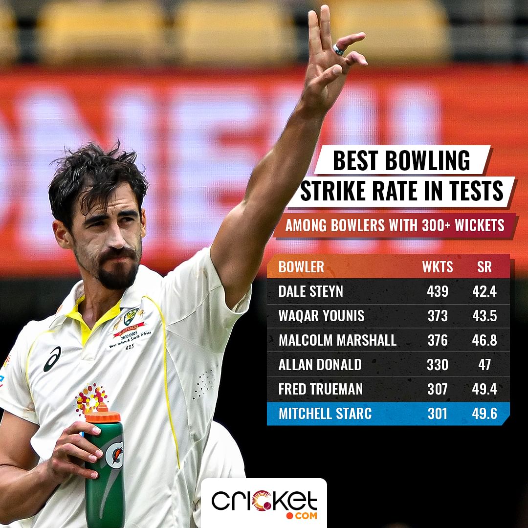 At the Gabba, Starc became the fifth Australian pacer to get to 300 wickets in Test cricket. Remarkably, none of the other four have a strike rate as good as the 32-year-old.