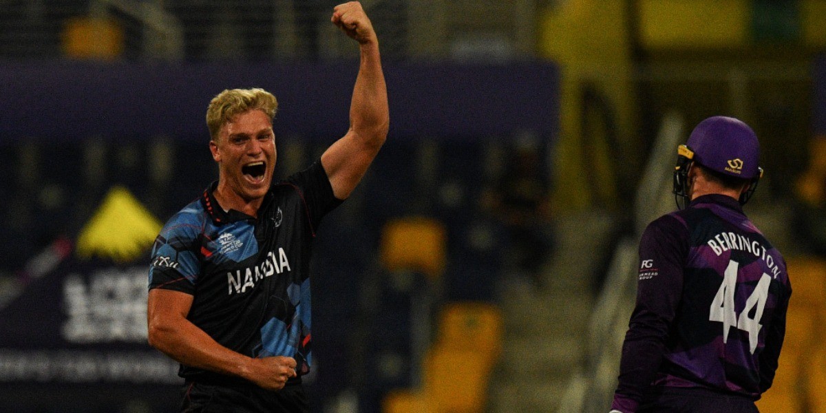 In search of a redemption from their previous batting display, Scotland sunk further against Namibia. In this match, it wasn't a mystery spin but a tall lanky fast bowler in the form of Trumpelmann. In the first delivery of the match, George Munsey chopped it on to the stumps. In his third and fourth delivery, Callum McCleod and Richie Berrington were packed off for ducks and in a matter of minutes of the start, Trumpelmann had three. He became the first ever bowler in T20Is to pick up three wickets in the first overs of the match. Overall, he was the third bowler to achieve this feat in a T20I innings after Angelo Mathews in 2009 T20 WC against West Indies and Emmanuel Sebareme of Rwanda against Lesotho in 2021.