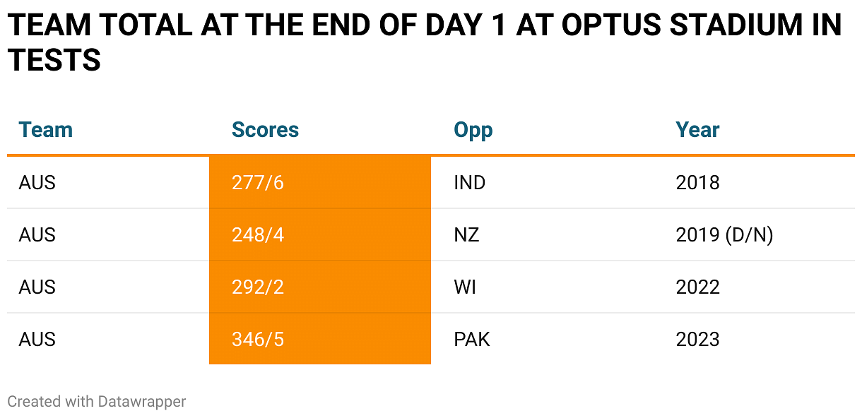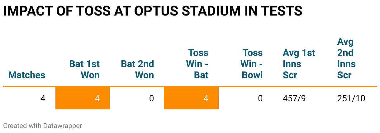 At this venue, Australia have historically ruled the first day; they have batted first in all four Tests, never losing more than six wickets even once.