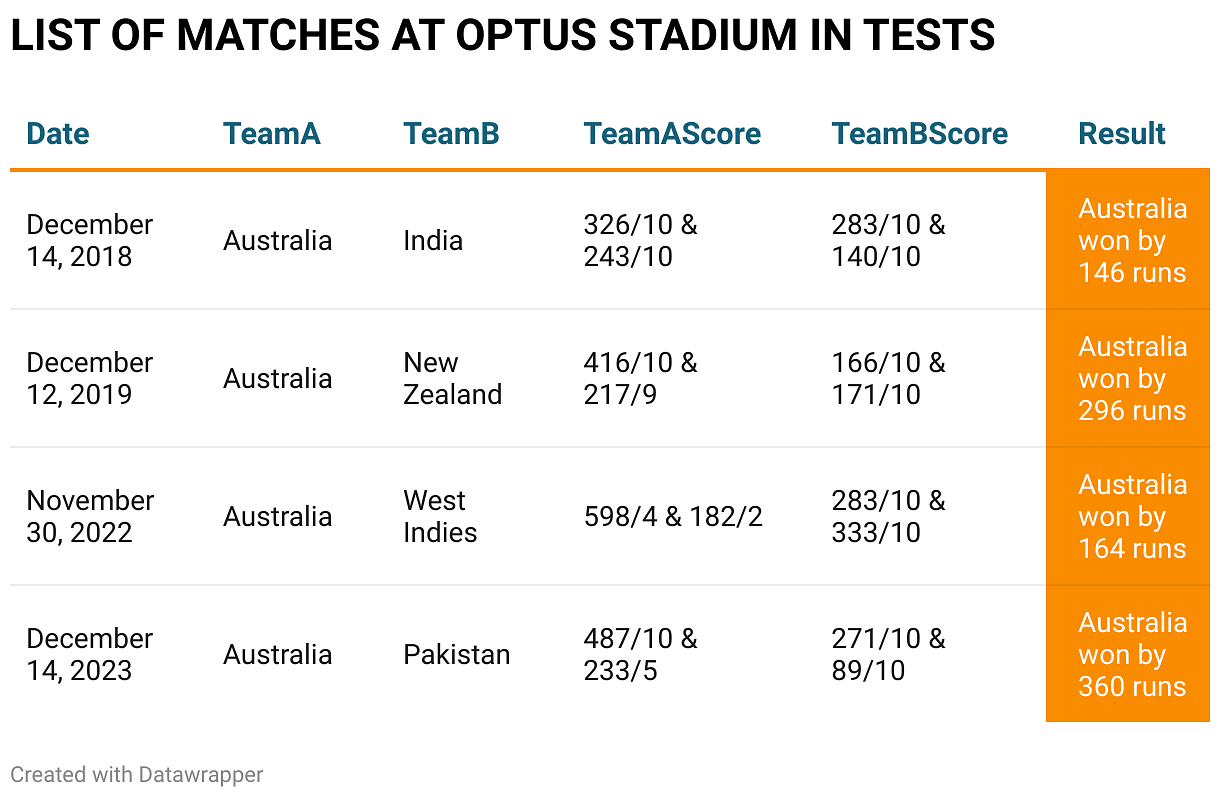 Australia have a 100% record at this venue in Tests as they have won all the four Tests at the venue. This venue made its international cricket debut in BGT 2018 where the Kangaroos convincingly beat the tourists by 146 runs. In the other three Tests, the Aussies won in dominating fashion against England in 2019, West Indies in 2022 and Pakistan in 2023.
