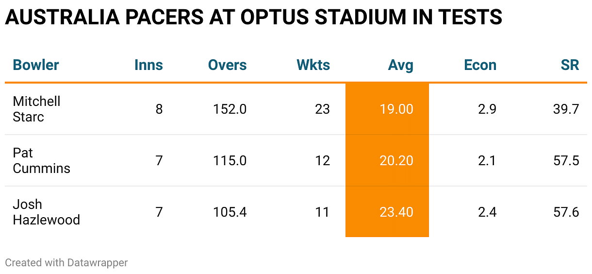 Apart from Lyon's spin dominance, the pace attack of Australia have also been terrific with Mitchell Starc, Pat Cummins and Josh Hazlewood all averaging 23 or under at the venue. Starc has the best record among the three: he's taken the same number of wickets at the Optus as Cummins and Hazlewood combined.