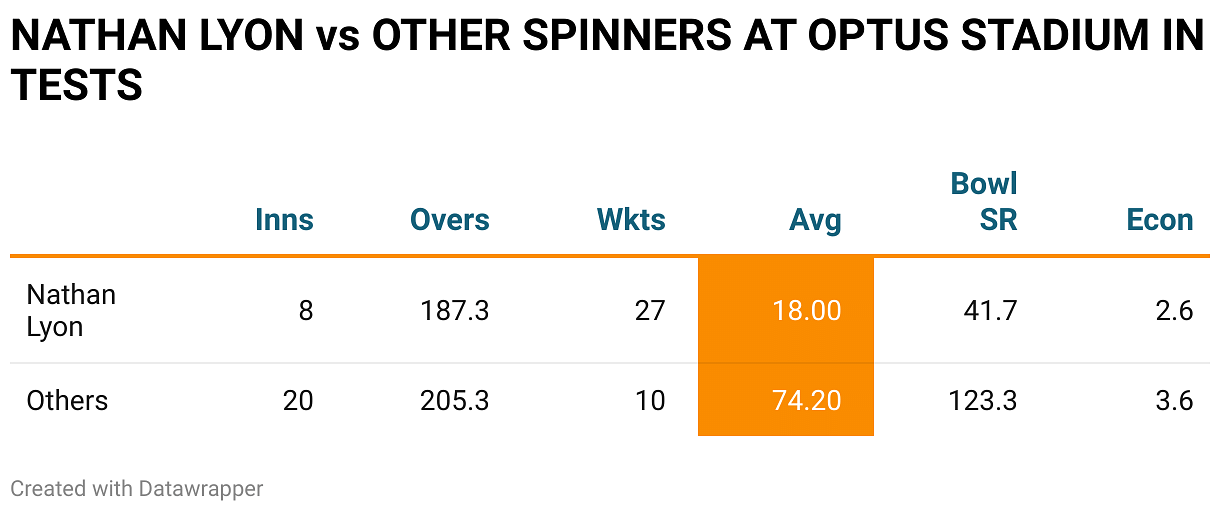 > Nathan Lyon is the only spinner that has found success at the venue. His record dwarfs the numbers of every other spinner; he is an x-factor here