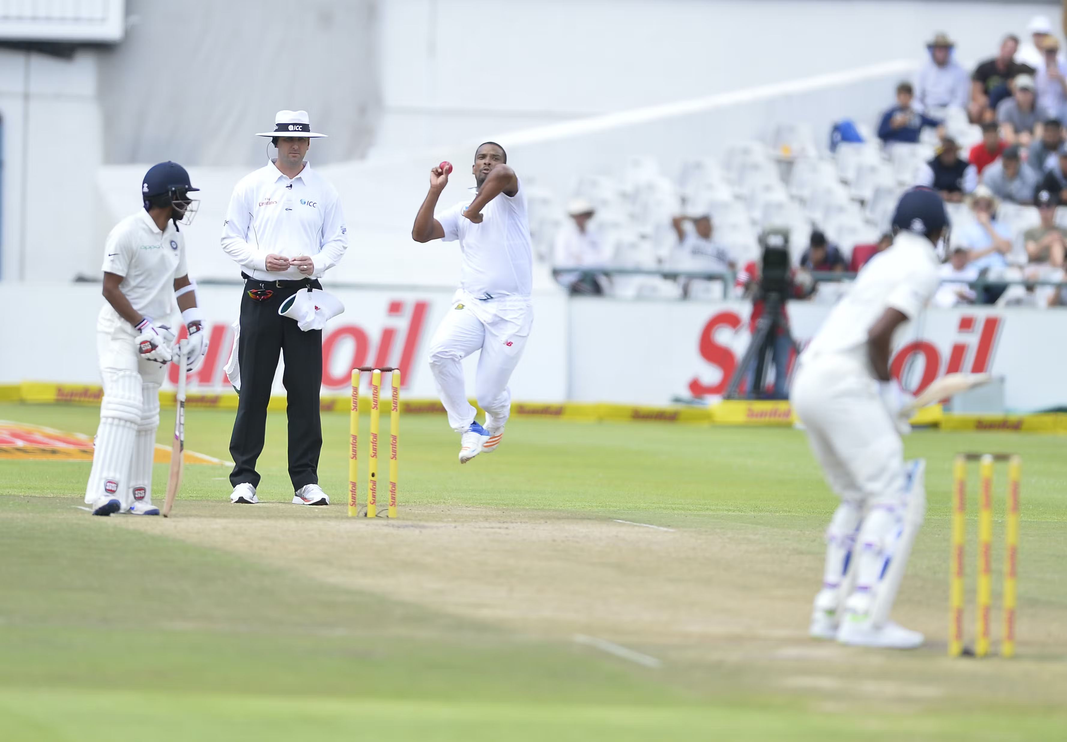 In the third over of his spell, Philander delivered a hammer blow by trapping Kohli leg-before for 28, and, four balls later, knocked over Rohit Sharma, who’d spent considerable time at the crease, having faced 30 balls.