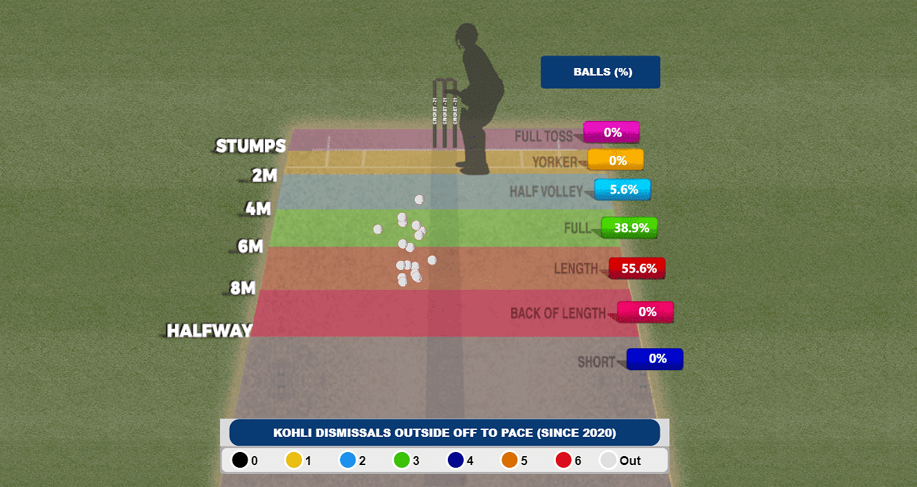 It was the 12th time since 2020 that Kohli had got out nicking one to the wicketkeeper. Only Joe Root (13), Cheteshwar Pujara (14) and Zak Crawley (18) have nicked more to the wicketkeeper off pacers in the last 4.5 years.