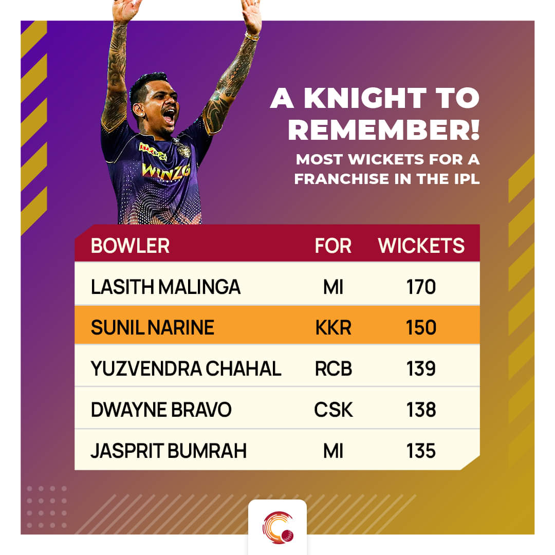 In this game, the wily spinner bagged his 150th IPL wicket. Overall, in the IPL, Narine became the ninth bowler to bag 150+ wickets, the sixth spinner and the first overseas spinner to achieve this feat. To add more, he also became the second bowler in the IPL to bag 150+ wickets for a single franchise. Lasith Malinga, who played his entire career for Mumbai Indians has the most (170).